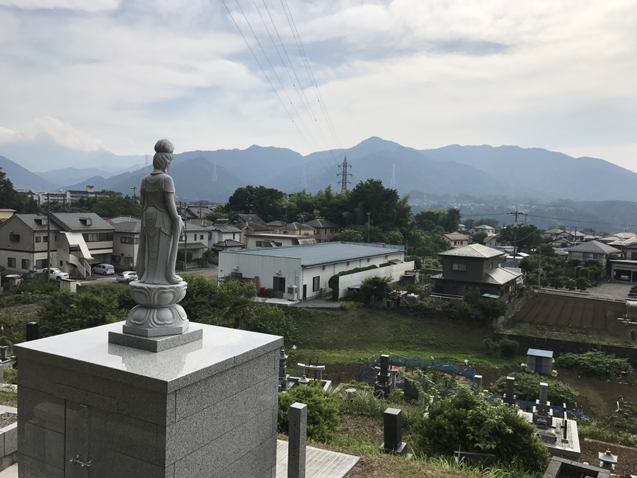 長成寺の墓地は、高台から桜、つつじ、せせらぎ、ホタルなどを望む自然に包まれた心休まる静かな場所です。